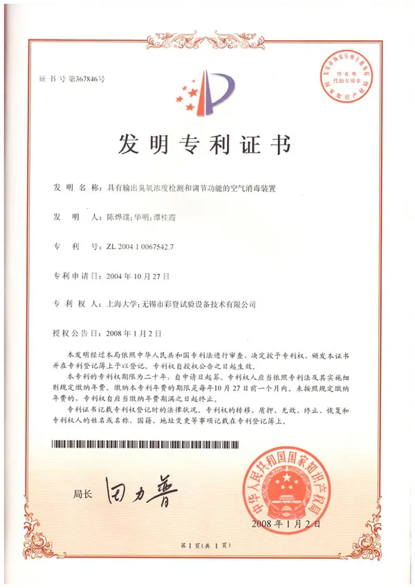 جهاز تنقية الهواء مع خاصية اكتشاف تركيز الأوزون وضبطه